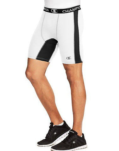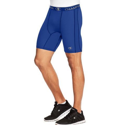 Stretch to move with you. PowerFlex apparel has a unique close to body fit and stretch for a full range of motion. With Double Dry™ moisture wicking technology to keep you dry. Compression shorts have comfort logo elastic waistband. Reflective C logo at left hem. Mesh gusset for ventilation. PowerFlex ID. 6-inch inseam.
