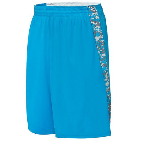 Two layers of 100% polyester wicking knit * Colored side features Digi Camo printed side inserts * Printed inserts are roller printed to reduce chance of dye migration * Fully reversible * Full-cut * Each layer hemmed separately for embellishment * 9-inch inseam * Youth inseam graded