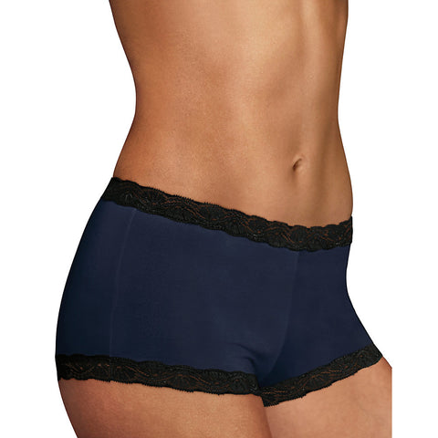 You will feel fun, flirty, and fabulous in our Maidenform Microfiber and Lace Boyshort!Delicate and feminine styling.Scalloped lace details.Soft fabrication.Comfortable all day wear.Stretches to move with your body for a flexible fit.Low rise style.